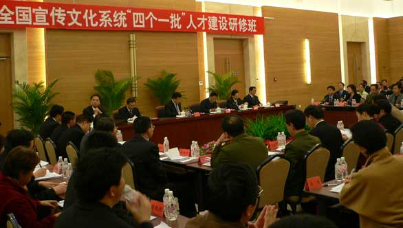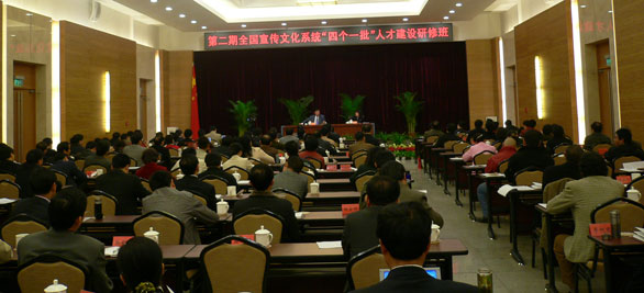 院长作为“四个一批”工程入选人员参加了研修班。中宣部常务副部长吉炳轩作了开班动员。中共中央政治局委员、书记处书记、中宣部部长刘云山11日在同研修班学员座谈时强调,要牢固树立人才资源是第一资源的观念,认真实施好“四个一批”人才工程,珍惜人才、爱护人才、用好人才,充分发挥工程的示范带动作用,逐步形成多层次的人才培养体系,努力造就老中青相结合、覆盖不同门类的优秀人才群体,为繁荣发展宣传文化事业提供有力保障。