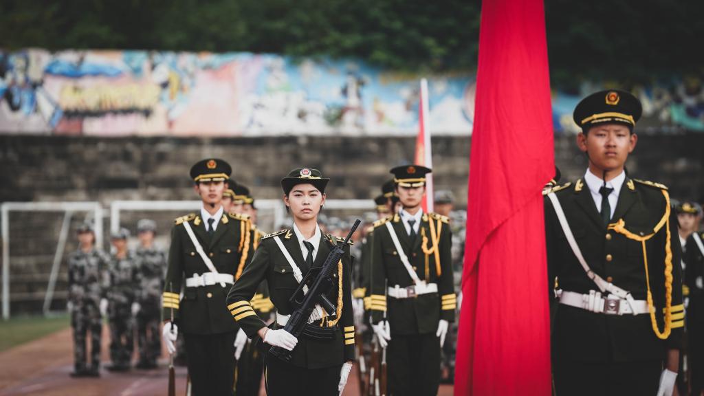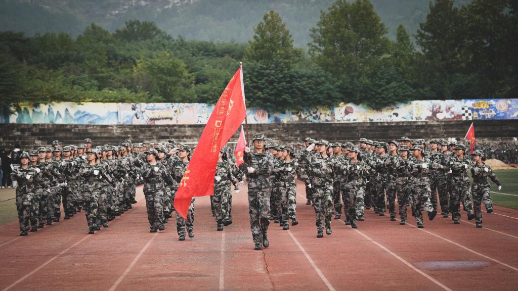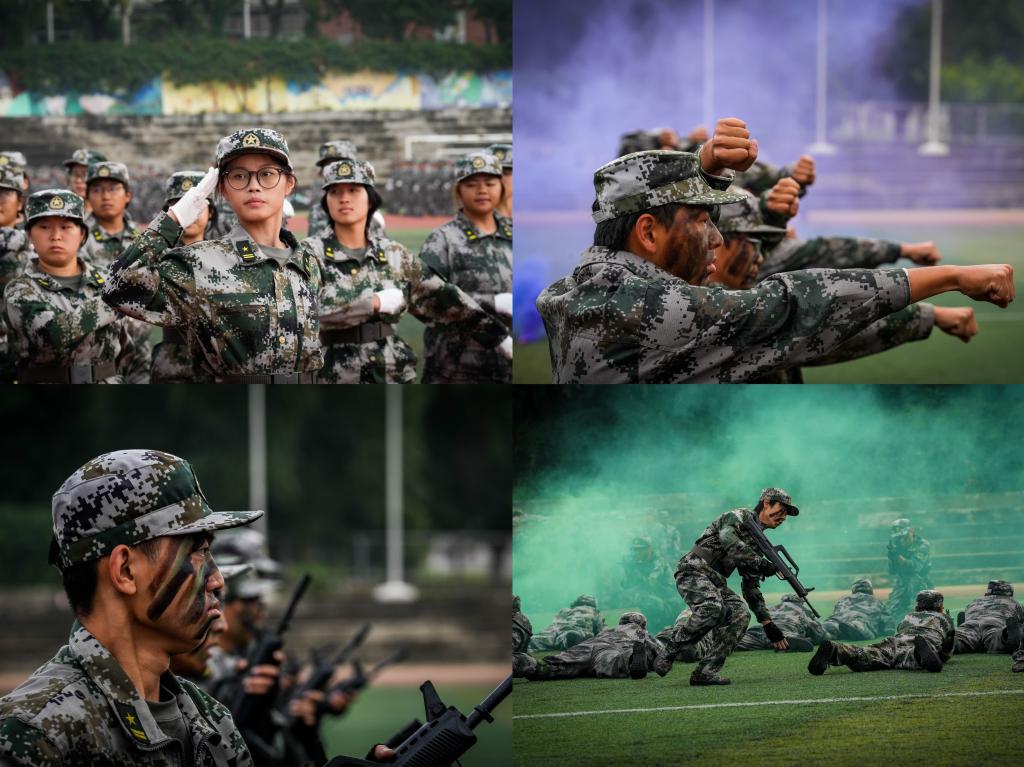 军训汇报表演中,各方队依次亮相。分列式方队步履铿锵,刺杀操、军体拳气势如虹,综合战术演练震撼人心。此次表演生动展现了军训成果,同时也彰显了山工艺学子奋勇争先的精神与朝气蓬勃的青春担当。