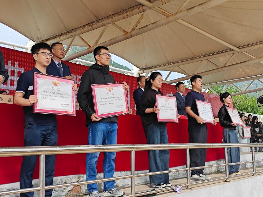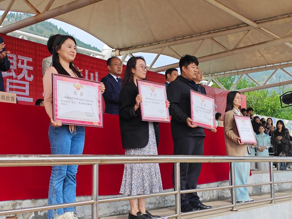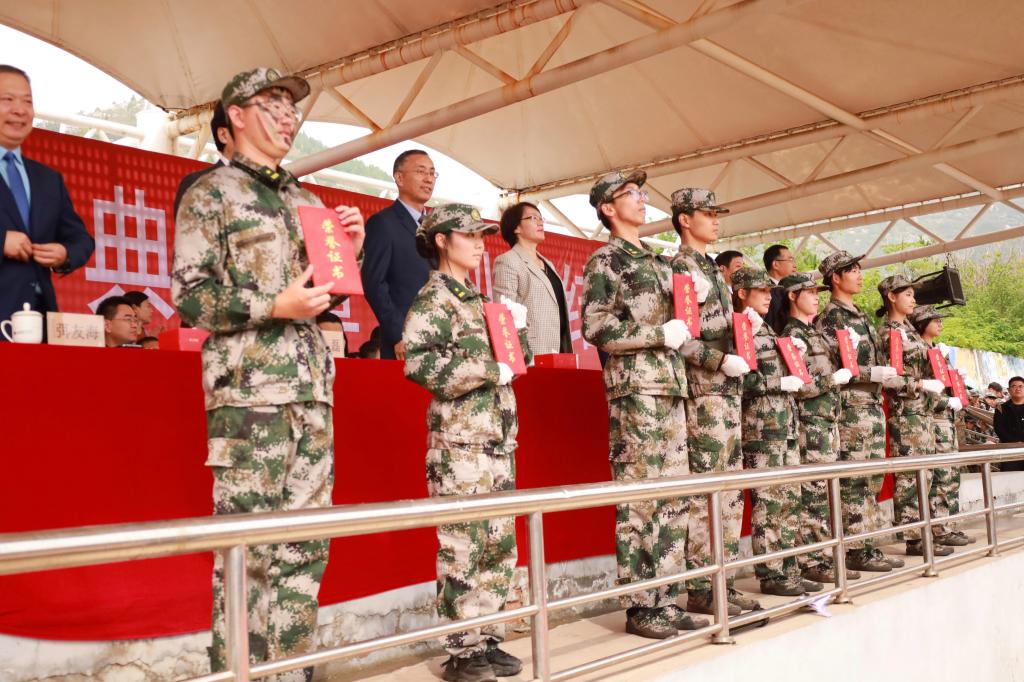 党委副书记韩世春宣读军训工作表彰决定。出席典礼的校领导为军训工作先进集体、个人颁发奖状与荣誉证书。