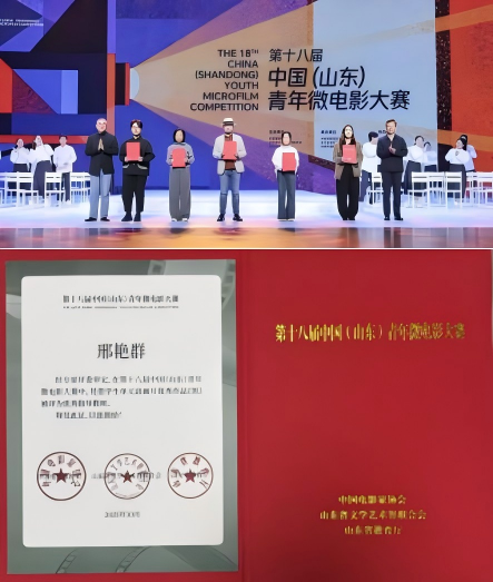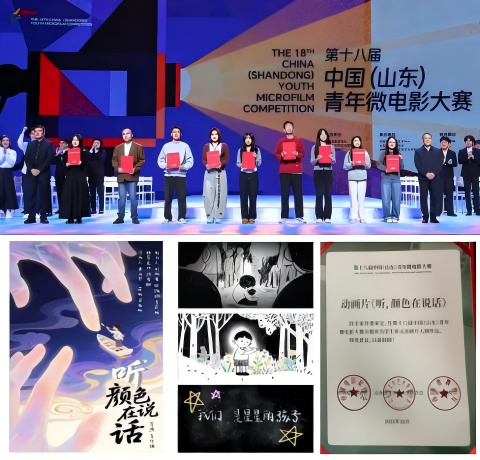 10月20日,第十八届中国(山东)青年微电影大赛荣誉盛典在济南举行。永利官网数字艺术与传媒学院李静雯、常庆鹏创作的《饵》斩获学生单元优秀作品,李佳楠、刘炳睿、张淄涵、李昊城创作的《听,颜色在说话》获入围作品,邢艳群老师获评优秀指导教师,学校获评优秀组织单位。