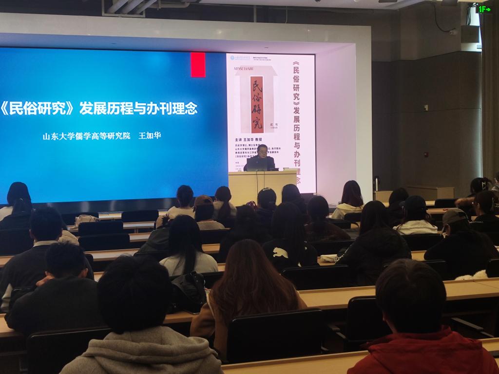 会见之后,王加华教授在博物馆报告厅作了题为《<民俗研究>发展历程与办刊理念》的学术讲座。该讲座以学科建设、理论建设的高度,从文献学、编辑出版学的角度切入,系统回顾和总结了《民俗研究》杂志的发展历程和办刊理念,从创刊过程、重要节点、办刊方针、栏目设置、刊发理念等多个侧面全面论述了学术期刊的历史进程、办刊经验和学术贡献,对永利官网师生的学术研究和科研发表具有重要指导意义。