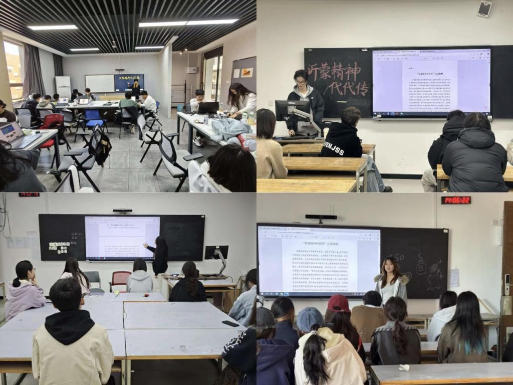 各学院团总支以团支部为单位,通过团支书领学、观看红色影像、专题研讨等形式,深入开展沂蒙精神专题学习。视觉传达设计学院通过“横山母亲”等红色故事宣讲和《沂蒙六姐妹》观影活动,以经典细节触动学生心灵;现代手工艺术学院通过观看红色视频、PPT专题讲解、互动研讨等方式凝练行动倡议,并组织集体宣读践行誓词;数字艺术与传媒学院结合党的奋斗历程与重要指示,开展线上线下双渠道宣讲,激发学子传承红色基因的热情。