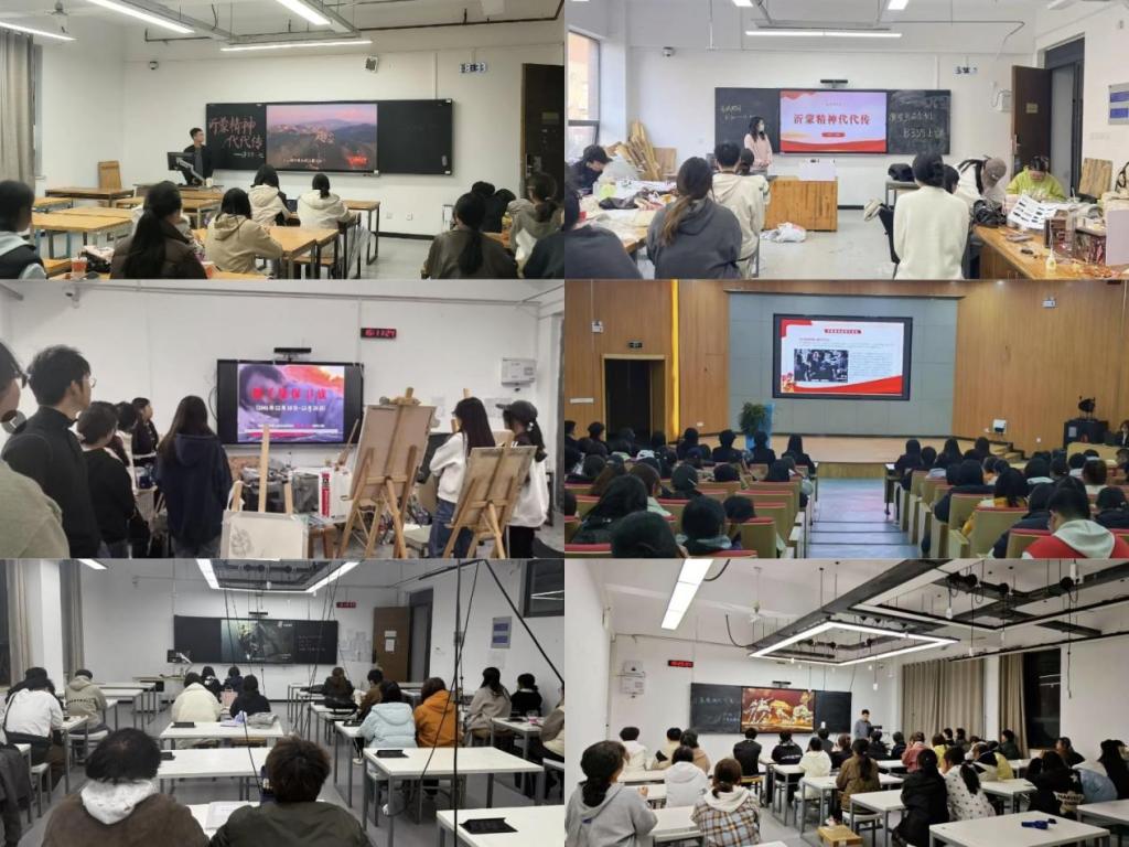 各学院注重将沂蒙精神与专业特色相结合。建筑与景观设计学院深入解读沂蒙精神作为共产党人精神谱系的价值;工业设计学院通过《档案里的沂蒙精神》系列视频,体悟“水乳交融、生死与共”的鱼水深情;服装学院将沂蒙精神与党的二十大精神结合解读时代价值;造型艺术学院通过“渊子崖保卫战”历史复盘,感受沂蒙人民的铁血底色;应用设计学院采用“宣讲+观影+交流”模式,凝聚奋进共识。