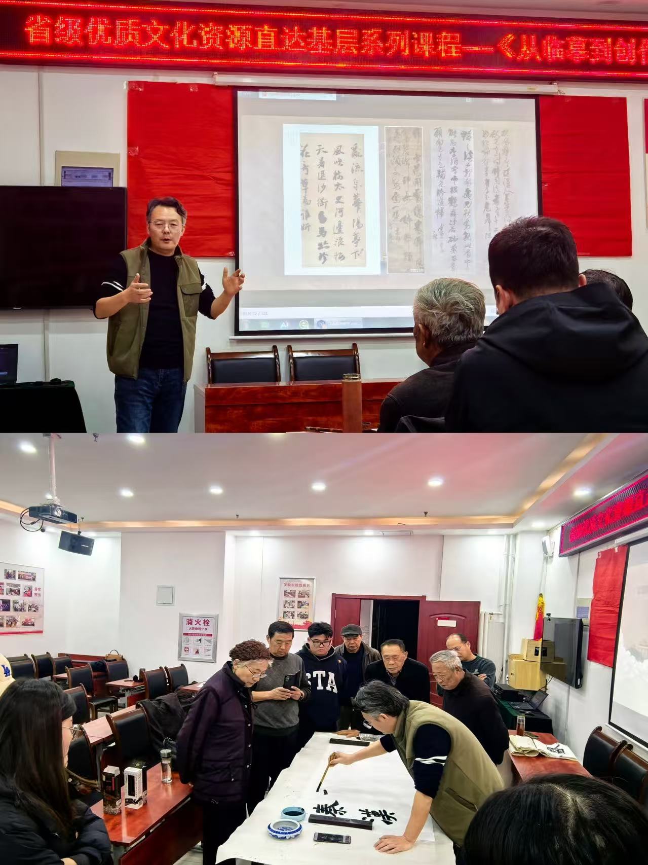 “临摹是根基,创作是表达,咱们先读懂古人笔意,再写出自己的味道。”德州社区课堂里,墨香萦绕,造型艺术学院陈锋老师的《从临摹到创作》书法课正热闹开讲。陈老师以王羲之的经典作品为例,细致讲解笔法精髓,随后,他拿起毛笔蘸满墨,当场示范,边写边讲解:“注意手腕发力,别光用手指,这样笔画才够流畅。”见居民们动笔尝试,他又俯身指导,纠正握笔姿势与运笔角度,“创作别急,先把临摹的功夫打牢,后面自然能写出自己的风格。”墨香里,从读懂古人笔意到亲手落笔实践,大家不仅摸清了书法门道,更在陈老师的示范里,感受到传统艺术的扎实与温度。