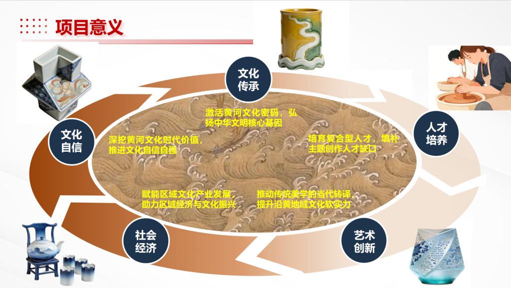 “黄河文化主题陶瓷艺术创作人才培训”项目由现代手工艺术学院刘木森教授主持。项目以“陶脉即文脉”为核心逻辑,围绕黄河文化传承与创新,通过系统的陶瓷艺术创作培训,培养能够运用现代设计语言诠释黄河文明的高层次专业人才。项目强调“科技赋能传统,艺术激活历史”,力求将文化传承、艺术创作与产业实践的深度融合,致力于为黄河流域生态保护和高质量发展提供人才支撑与创新动力。