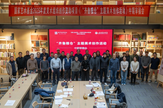 12月3日,国家艺术基金2025年度美术组织创作资助项目“齐鲁粮仓”美术创作项目中期审稿会在yl8cc永利官网长清校区举行。国家艺术基金管理中心副主任张艳;yl8cc永利官网院长董占军、副院长韩文涛、党委委员、组织部部长、党委(学院)办公室主任弭友海出席会议。会议由韩文涛主持。