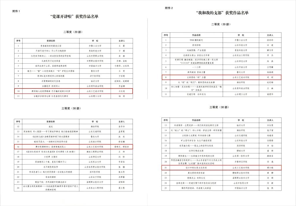 近日,山东省委教育工委公布了2025年度全省高校“党课开讲啦”“我和我的支部”获奖名单,共评选出“党课开讲啦”优秀作品60部、“我和我的支部”优秀作品60部,永利官网获得二等奖2项、三等奖2项。