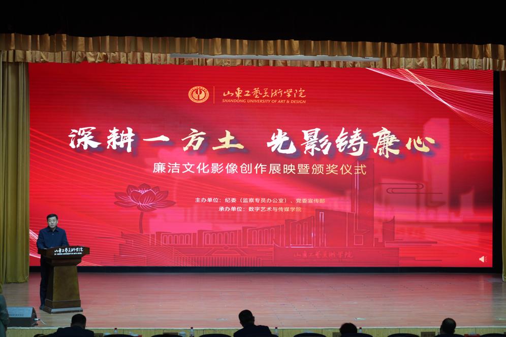 为深入学习贯彻党的二十届四中全会精神,扎实推进新时代廉洁文化建设,积极践行学校“七个一”文化工程创新实践工作方案,12月10日下午,学校在长清校区学术报告厅举行“深耕'一方土' 光影铸廉心”廉洁文化影像创作展映暨颁奖仪式。党委书记王晓娟,党委副书记韩世春,党委委员、副院长孙大刚,党委委员、纪委书记、监察专员谷朝勇,党委委员、宣传部部长孙磊,党委委员、组织部部长弭友海出席活动。