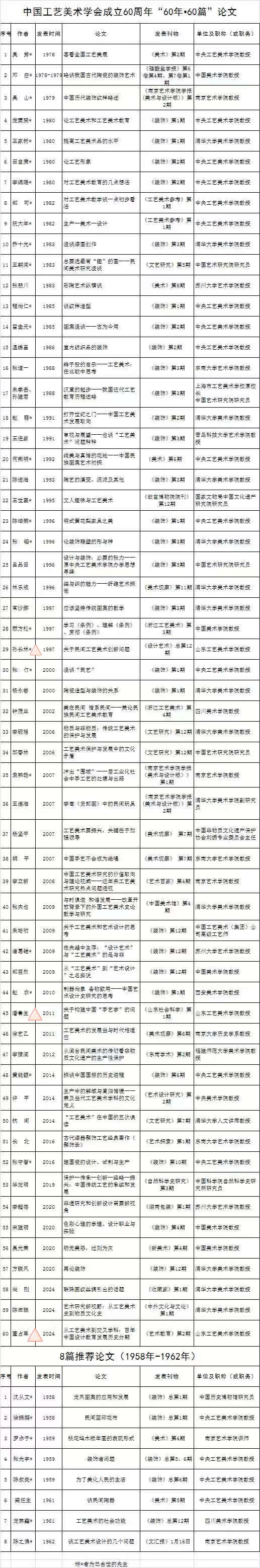 据悉,“60年·60篇”论文评议活动是中国工艺美术学会成立60周年的重要学术总结,旨在系统梳理1965年以来我国工艺美术理论研究的发展脉络,遴选在学科建构、理论创新和行业实践中产生深远影响的代表性成果,具有极高的学术权威性和历史价值。