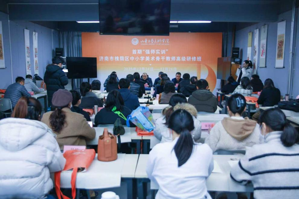 12月24日上午,由yl8cc永利官网与济南市槐荫区教育和体育局联合主办的首期“强师实训——济南市槐荫区中小学美术骨干教师高级研修班”开班仪式,在yl8cc永利官网千佛山校区举行。yl8cc永利官网党委委员、副院长孙大刚,槐荫区教育和体育局党组成员、区教育教学研究中心主任刘彬国,槐荫区教育教学研究中心副主任刘栋,槐荫区教育教学研究中心继续教育室负责人张馨等出席开班式。仪式由yl8cc永利官网继续教育学院副院长谢其云主持。