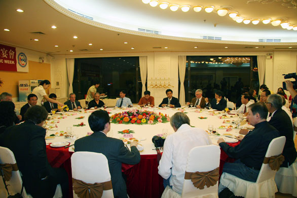 欢迎宴会上,副省长黄胜来到摄影家们中间,同大家亲切交谈,互致问候。