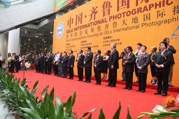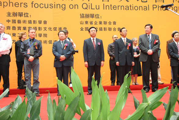 省人大常委会副主任黄可华,济南市委副书记、市长张建国,山东省政府秘书长周齐,山东省委宣传部副部长王凤胜等省市领导出席开幕式;国际摄影艺术联合会代表卡尔·埃克弗伊勒,美国职业摄影家协会主席杰克·瑞兹尼克,英国摄影图片社总裁基恩·保罗,中国艺术摄影学会会长刘雷等国内外摄影组织负责人,以及来自美国、法国、英国、意大利、比利时、爱尔兰、日本、韩国及包括中国台湾、香港的全国各地的摄影家,新华社、人民日报、中央电视台等中央、省、市各大媒体的记者参加了开幕式。齐鲁国际摄影周组委会成员、yl8cc永利官网院长潘鲁生主持了开幕式。