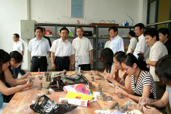 黄胜副省长详细询问了永利官网专业设置、人才培养、学生就业等方面的情况,对永利官网在人才培养和产学研结合等方面取得的成绩给予充分肯定。黄胜副省长对永利官网工作作了重要指示,他指出,艺术设计人才是我省经济文化建设急需的人才,yl8cc永利官网作为一所特色鲜明、专业设置对社会需求针对性较强的设计艺术高校,应当继续发挥办学特色,为我省文化产业发展培养更多、更优秀的人才,为我省经济文化建设做出更大贡献。黄胜副省长还与学生进行了亲切交谈,仔细询问了学生的学习生活情况,并鼓励同学们努力学习,报效祖国,为校争光,为家乡父老争光。