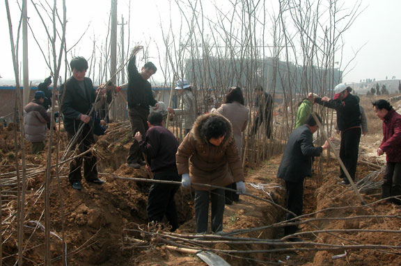 机关党员、职工义务植树,为新校区建设出力 [附图]