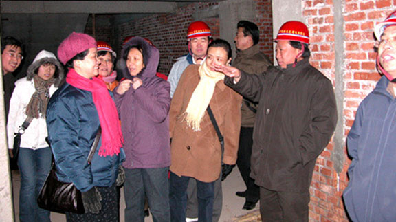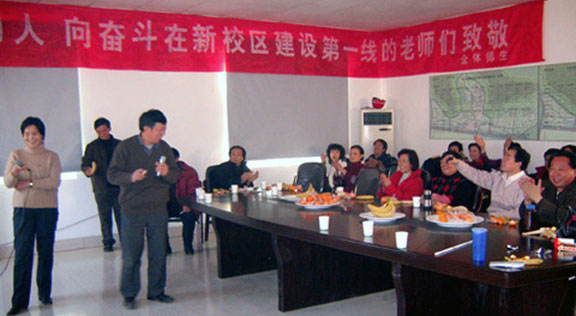 短暂的仪式之后,慰问者们在王秀存副院长和刁在祥书记的引导下,冒着严寒参观了新校区建设的各个工地,并与新校区建设者们进行了大联欢,共渡2005年第一天的美好时光。