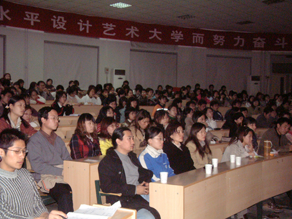 吕学海副教授结合自己丰富的阅历和对服装行业精堪的研究,把设计师与学生的作品原汁原味地展示在同学们面前,并对作品进行了深入的剖析。他指出在追求个性化,工艺精湛的当今潮流中,时尚装打破了以往颜色的局限,板式的单调,上升到追求丰富、多变,又不失自然、协调,女装在柔美中又不乏焕发出男装的帅气与不拘一格;休闲装一改以往造型简单、单调,而更注重体现运动、活泼,但又不失优雅严谨。吕教授告诉同学们,设计师把最美的一面留在T型台,留给观众,但是他们在T型台后的压力也是相当大的,正所谓“台上一分钟,台下十年功”,设计师台上那最绚丽、最精彩的一刻,都是他们平时智慧的结晶。因此吕教授要求同学们注重平时知识的积累,注意生活中应该注意的细节,博览群书,开阔视野,这样才能设计出有意义、有价值的服装。