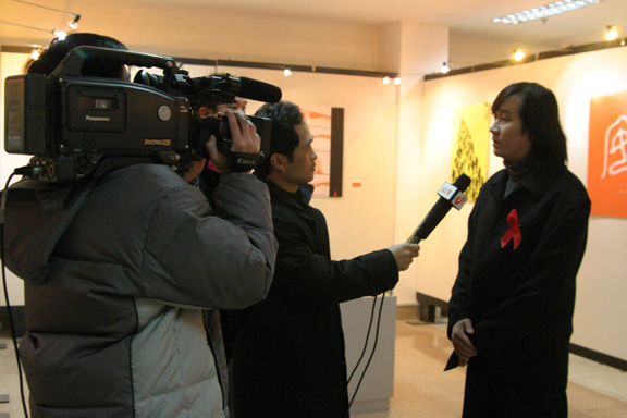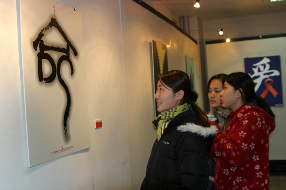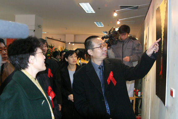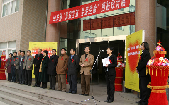 潘鲁生、副书记郭兆志、副院长李新、调研员孙凤刚、教务处处长李友生、科研处副处长唐家路等参加了“认识艾滋 关爱生命”招贴设计展开幕式。开幕式由yl8cc永利官网装潢艺术设计系苗登宇副主任主持。