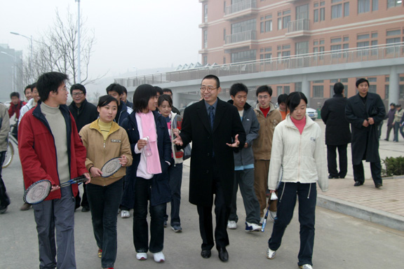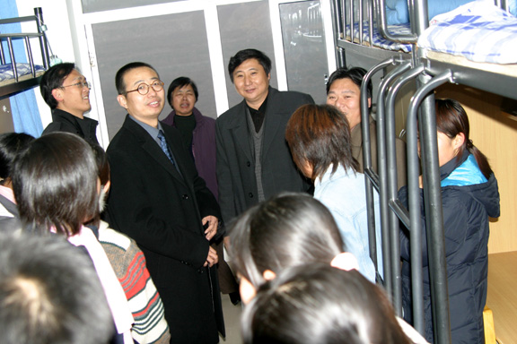 潘鲁生院长一行在山东大学领导、老师的陪同下一起参观了学生宿舍和食堂,并与山东大学的领导、老师以及我院同学合影留念。