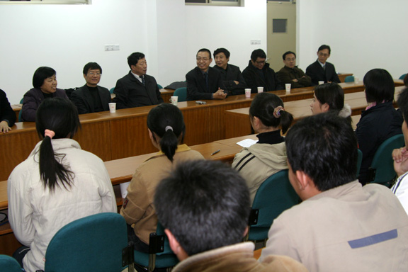 同学们为两所院校领导的亲临深为感动,表示学院为他们提供了良好的学习、生活环境,他们一定会努力学好山东大学一流的机械工程设计理论知识,把这些一流的设计理论知识同我院的先进设计理念和设计特色有机结合起来,不辜负院领导的关心。同时,向领导们提出了各自的想法和目前存在的问题和困难,对学院提出了一些建议,如:是否可以多开一些专业性的学术讲座、学院能否提供机会增加他们与本专业学长以及别的专业同学的沟通交流等。我院领导与山东大学领导都表示会尽量满足学生的要求,解决同学们提出的问题与困难,为学生学习成才铺平道路。