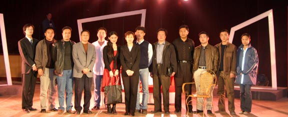 我院李新副院长、数字艺术系主任王传东、北校区办公室主任刘慎华等领导及北校区全体师生观看了小剧场话剧《影子》。演出高潮跌宕、精彩纷呈。演员们的高超演技,赢得了观众的热烈掌声和一致好评。演出结束后李新副院长同演员们合影留念,并对演员们表示衷心地感谢。