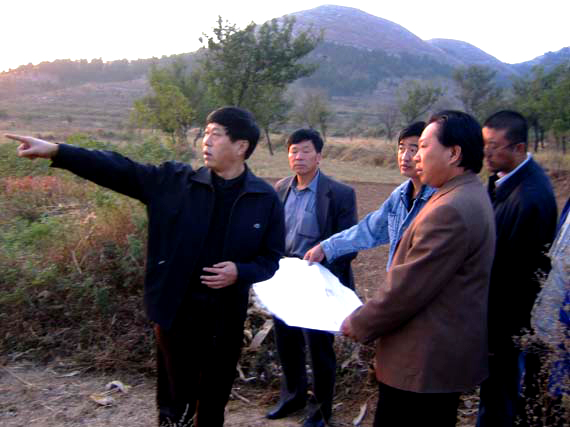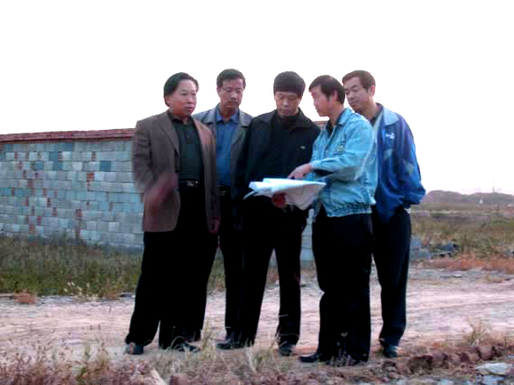 于茂阳书记(左一)与总指挥、副院长王秀存(右二)在指挥部主要同志陪同下现场考察教职工宿舍用地