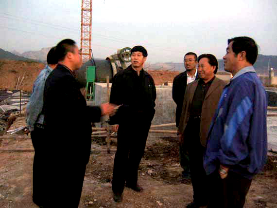 于茂阳书记(中)、王秀存总指挥(左一)与施工部长张建平同志(右二)、纪委副书记王进生同志
