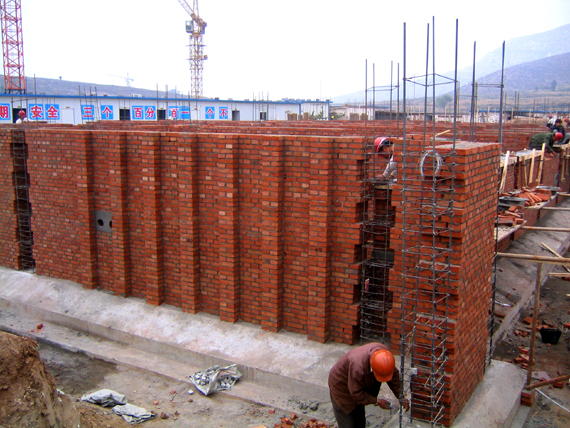 一号学生公寓楼地下室施工现场