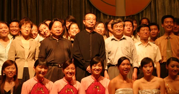 潘鲁生等领导走到台前亲切的与同学们合影留念。