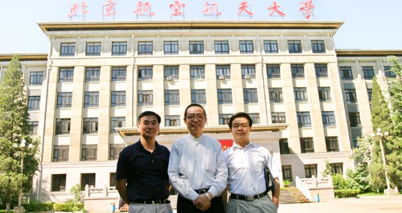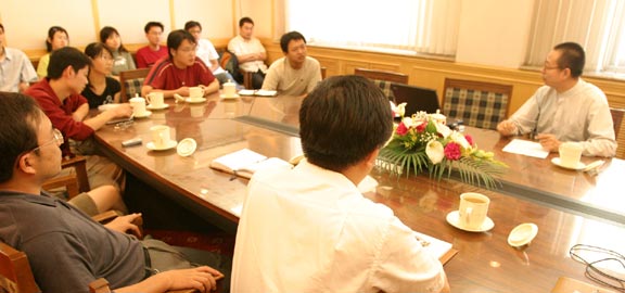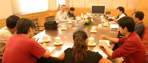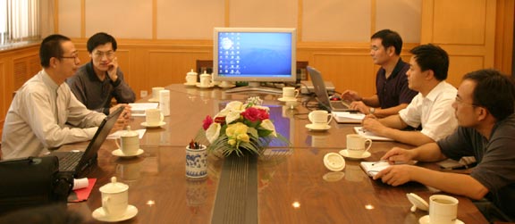 顾群业副处长一行来到北京航空航天大学,考察了由教育部赵沁平副部长主持的虚拟现实新技术教育部重点实验室。北京航空航天大学计算机学院郝爱民副院长接待了潘院长一行,并召开了由实验室副主任沈旭昆博士、副教授齐越博士以及部分硕士、博士研究生参加的座谈会。经过交流,双方一致认为,两所学校各具优势,合作前景非常广阔。
