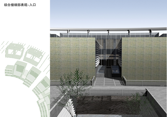 从核心建筑的色调看,设计师将灰色、青石色、红色三种色调进行巧妙、新颖的组合变化,比我们已经看到过的新校区建筑色调好看。红色象征人文、温暖、吉祥,与山野绿树互为映衬;灰色象征科技、高贵、纯洁;青石色与北大山的石头相一致。特别是对红、灰、青石色的深浅层次控制进行深入研究,能准确表现不同的内涵。