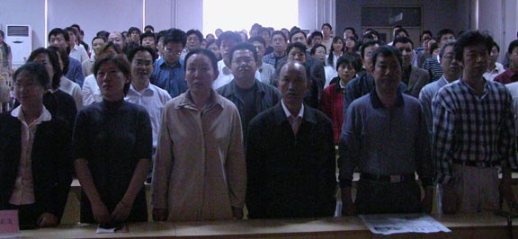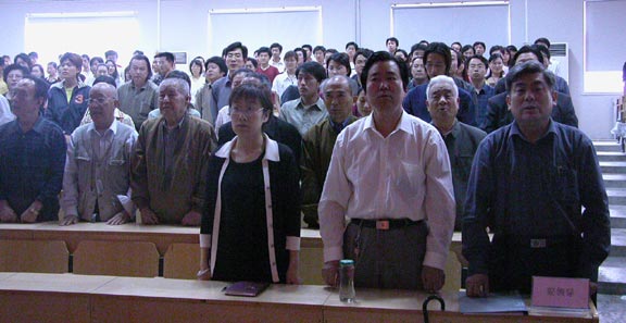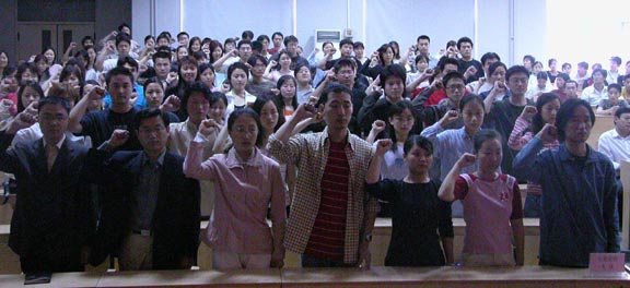 预备党员及未参加过入党宣誓的正式党员参加了宣誓,全体党员、入党积极分子及部分处以上干部参加了仪式。首先,全体起立,奏唱《国际歌》。接着,在庄严的气氛中,119名党员一起举起自己的右拳,向敬爱的党表达了自己的心声:“我志愿加入中国共产党……,随时准备为党和人民牺牲一切,永不叛党!”大家凝视着鲜红的党旗,眼中闪耀着激动的光芒。预备党员代表社科部副主任张焱同志发言,要在今后的工作中严以律己,做出表率。不仅要在组织上入党,更重要在思想上入党。争取做一个合格的共产党员。入党积极分子代表周策同学代表全体入党积极分子表明了对中国共产党的决心和不懈的追求。院党委副书记郭兆志同志对参加入党宣誓的同志们、同学们表示祝贺,同时也对他们提出了具体的要求的和希望,一要坚定信念。党的最高理想和最终目标是实现共产主义。无论在什么情况下,我们每一个共产党员都必须坚定这一理想信念。同时要脚踏实地地做好当前的工作。二要艰苦奋斗。 “两个务必”是我们党的宝贵财富和强大精神动力。要实现全面建设小康社会目标,要完成繁重的各项任务,就必须发扬艰苦奋斗的精神,必须要警惕和防止由艰苦到享乐、由勤奋到懒惰、由谨慎到骄傲的演变,坚决克服和纠正贪图享乐、不思进取,骄气十足、脱离群众,疲疲塌塌、碌碌无为等现象。三要做好表率。保持共产党员的先进性是时代的要求。要走在时代的前列,每个共产党员一定要严格要求自己,当好旗帜和标杆,把共产党员的称号叫响。一是要做学习的表率。努力提高自身素质,增强开拓创新能力,成为本专业的行家里手。二是要做工作的表率。在工作中冲锋陷阵,吃苦耐劳,勇挑重担,努力完成各项任务。三是要做守纪的表率。切实转变工作作风,做到自重、自省、自警、自励,一身正气、两袖清风,自觉维护学院的良好形象。四是要做奉献的表率。要牢记党的全心全意为人民服务的宗旨。凡事要想到自己是一名党员,要不计较个人得失,多考虑他人利益。淡泊名利、多作奉献。