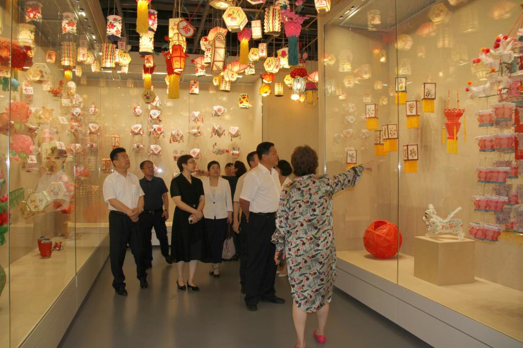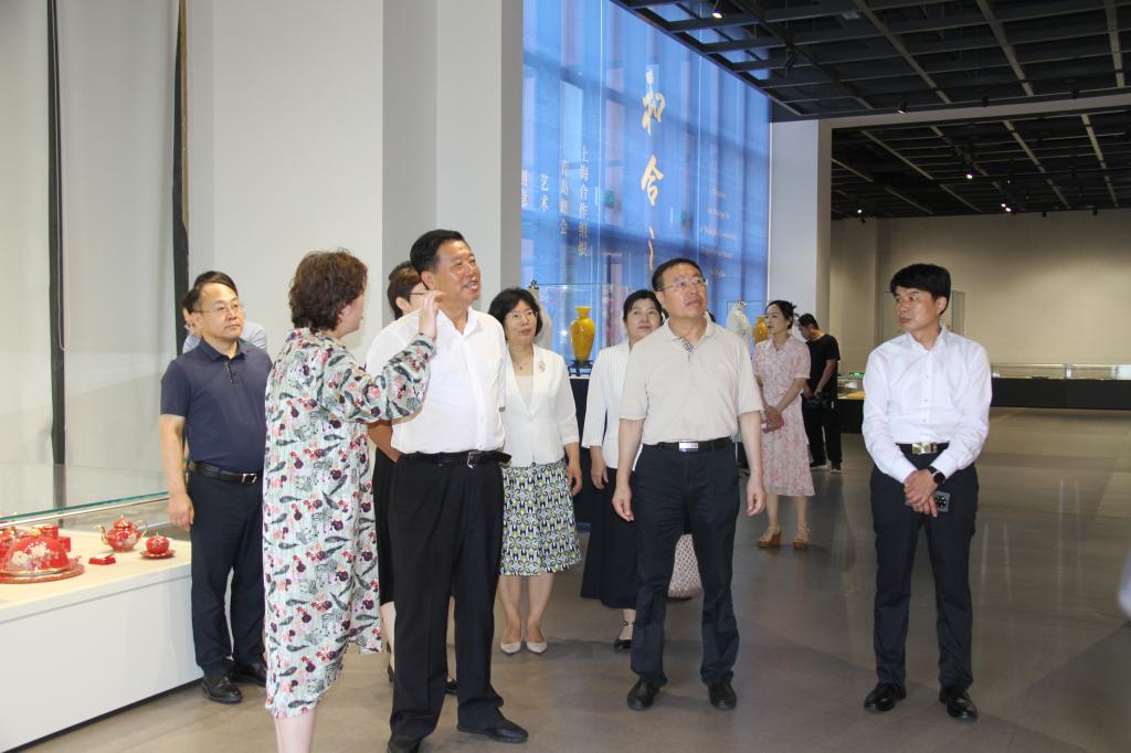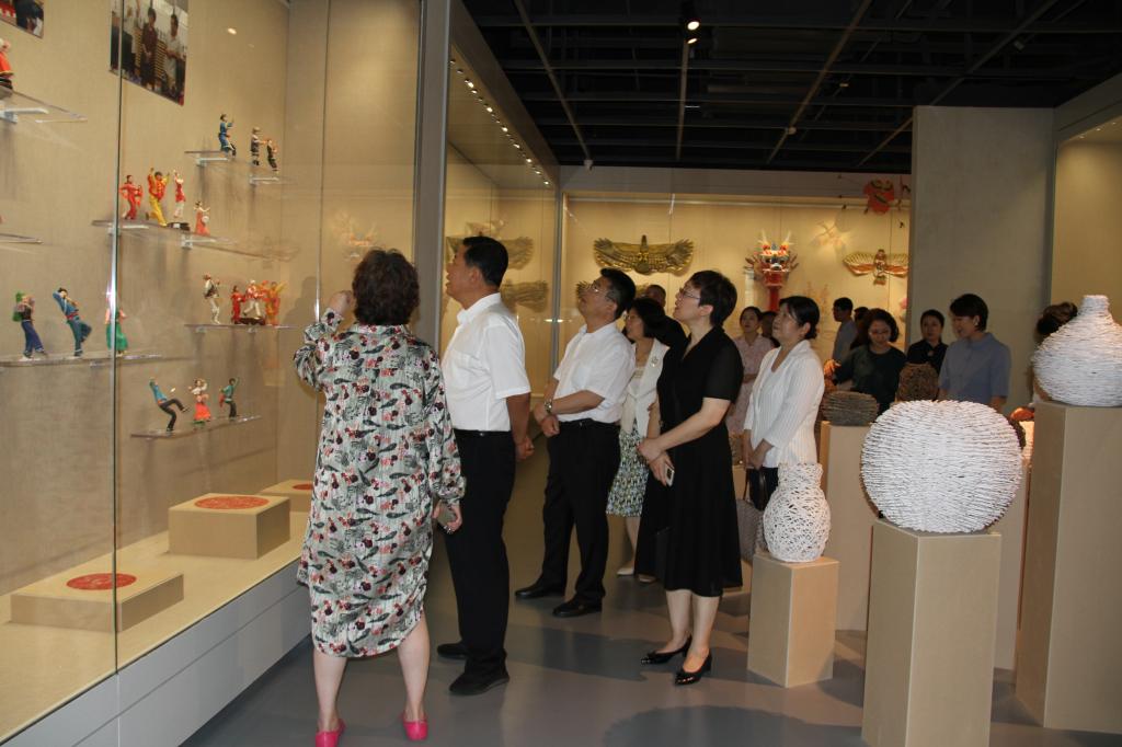 林峰海一行在学校领导陪同下参观了民艺博物馆,博物馆里功能各异的农具和柳编、花样繁多的饮食器具、凝聚巧思的织绣、精美考究的节俗用品、趣味盎然的儿童玩具等藏品,向来宾们生动展示了农耕社会民众的匠作美学、设计理想与造物智慧,也集中展现了学校开展设计艺术与工艺美术研究、民间艺术教育教学、文化传承与创新的丰硕成果。