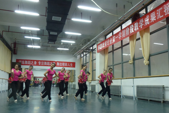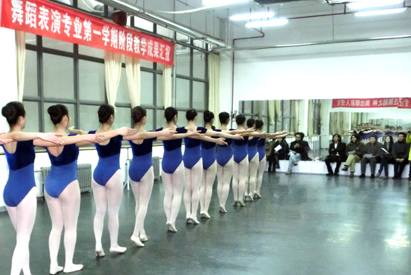 1月8日下午,服装学院在教学楼舞蹈表演室举办首届舞蹈表演专业阶段教学成果汇报表演。2013级舞蹈专业十四名学生参加了表演,对第一学期阶段教学成果进行集中展示。副院长苗登宇到现场观摩表演。