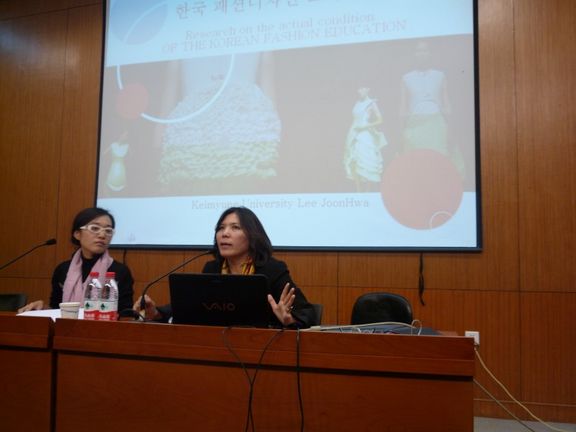 首先,李俊和教授就韩国服装产业以及韩国服装教育现状进行了介绍,对海外服装动向以及对海外的服装专业发展进行了分析,之后对韩国国家产学研结合的现状及特色进行了介绍,最后,李俊和教授对韩国启明大学服装专业进行了介绍,包括校园文化,服装专业的课程以及启明大学的学生毕业展作品。