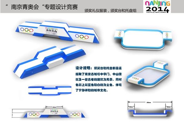 在刚刚结束的“南京青奥会”专题设计全国大学生广告艺术大赛中,由服装学院教师邹渊指导,服装学院学生陶嘉与工业设计学院学生肖刚明合作设计的作品《宁》荣获礼仪服装、颁奖台和托盘组三等奖。作品灵感元素提取了南京古城墙中华门,中山陵等建筑元素,以蓝白为主色,体现宁静祥和的城市文化。