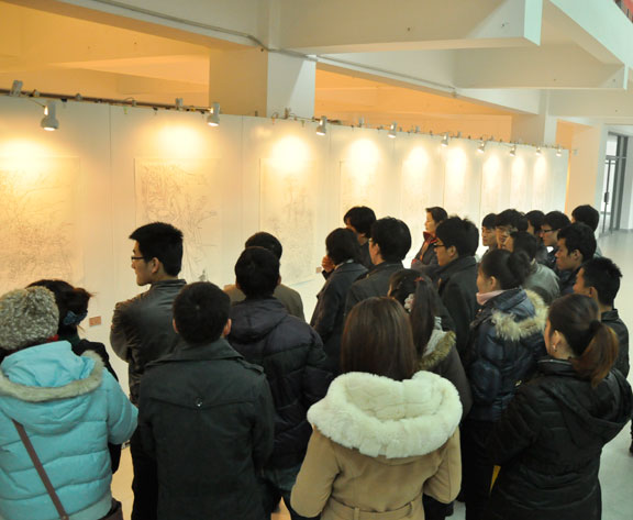 在展览现场,造型艺术学院的师生还围绕作品创作理念和技法进行深入交流讨论,将画展变成了课堂,氛围活跃,取得了良好的效果。