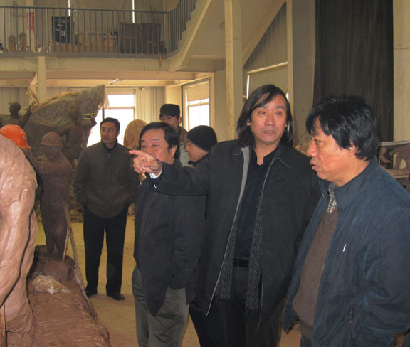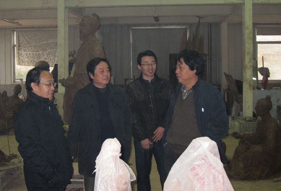 苗登宇副院长一行还从雕塑作品的人物造型、服饰、神态、布局关系及材料运用等方面进行了详细指导,提出了具体的修改意见。