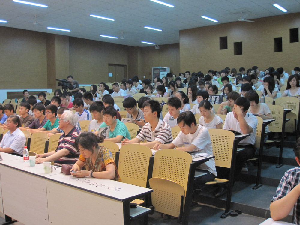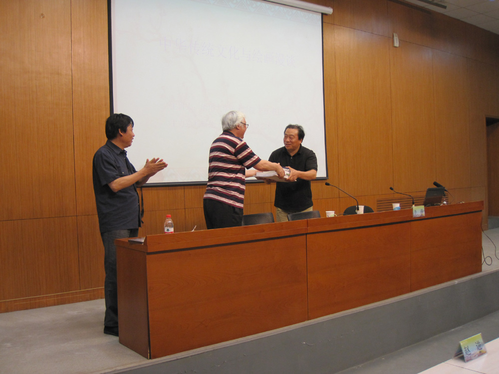 讲座中,李教授以文字和语言为切入点,阐述了人类文明的发展及中华传统文化的推进,通过《周易》知识及哲学理论说明了文化的重要性,并指出艺术的创作需要文化的积累和生活的沉淀,更要尊重传统文化,继承文化精髓,在继承中不断发展。李教授以自身的经历讲解了中国传统文化在曲折中前进的过程,认为学习文化知识必须要实事求是、善于发现、独立思考,深入研究。同时,李教授指出绘画的要注重美的设计,必须以人为本,充分考虑绘画的社会功能及人文内涵。李教授语言诙谐幽默,并运用肢体语言、曲艺表演等形式生动形象的表现了中国传统文化的精髓,赢得了同学们热烈的掌声。