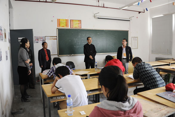 学校领导对新生入学测试工作高度重视,考试期间,院长潘鲁生、副院长苗登宇莅临新生入学测试考场进行巡视。校领导认真检查了考试组织工作,仔细了解考生作答情况,并对进一步加强新生入学测试工作做出了新的指示。监察处处长刘跃进,纪委副处级纪检员管维沂,教务处处长董占军,招生办公室主任、教务处副处长王霞,副处长滕丕强以及高职教学部相关负责人一同巡视。