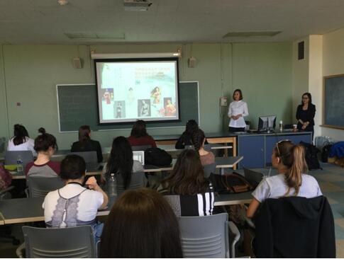 永利官网中美合作交流项目代表团抵达拉塞尔学院后,在服装系主任Lynn Blake教授的陪同下,参观了拉塞尔学院服装系的教学设施,包括学生教室、教师办公室、传统服饰陈列室、小型服装展厅、图书馆及校园环境。在拉塞尔学院服装系教室,永利官网服装学院教师王昉为拉塞尔学院服装系2014级全体同学做了一场关于服装表演策划的讲座。在讲座中,王昉介绍了中国服装表演专业的产生与发展,以及在中国如何去策划设计一场时装秀。讲座完毕后,在场的美国学生积极踊跃地提出了很多专业问题,并就相关话题进行了热烈的讨论。
