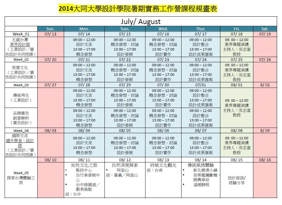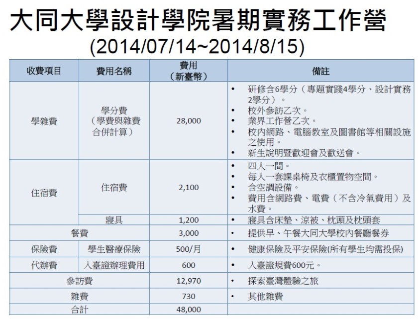 2014年台湾大同大学设计学院暑期实务工作营开始招募