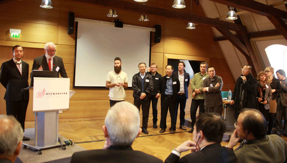 开幕式卢森堡文化部名誉总干事、新明斯特文化中心主席Guy__Dockendorf,中国艺术研究院副院长王能宪介绍艺术家