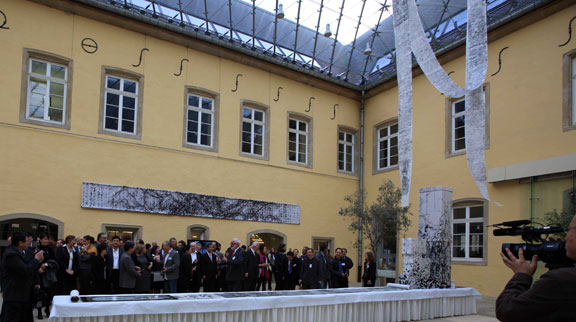 2011年10月26日,欧盟文化中心合作组织(EUNIC)、中国艺术研究院(CNAA)联合主办的第四届中欧文化对话艺术作品展与第四届中欧文化对话论坛同期在卢森堡新明斯特艺术中心开幕。展览展出了yl8cc永利官网艺术家、美术馆副馆长王瑞青创作的影像《书之象》和装置艺术《卷·语》系列作品。