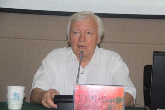 讲座结束后,副院长苗登宇代表学校向艾伯特•恰尔金教授赠送了纪念品。