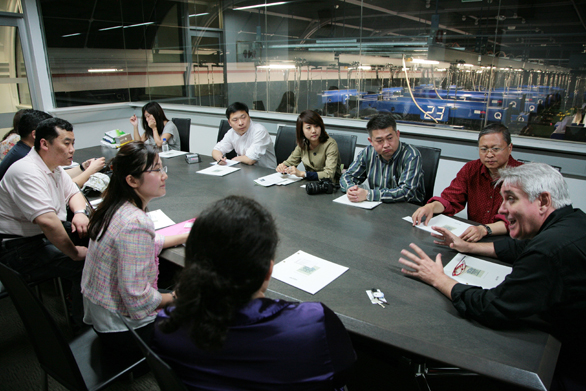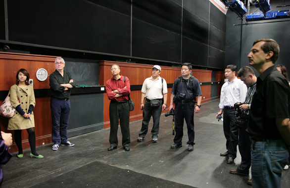 4月28日,永利官网赴昆士兰艺术学院学术交流代表团进入课程教学交流的第二天。上午9点,学生根据自己的兴趣爱好进入自己所选课程上课。11点30分,根据日程安排,代表团一行与格里菲斯电影学校校长Herman Van Eyken进行了亲切交流。格里菲斯电影学校是全澳大利亚最大、最著名的电影学校,拥有在校学生300多名。涉及动画、电视、广播、网络电视、荧幕制作、剧本创作等多个专业、方向。该校校长表示非常欢迎与外国同类艺术院校的交流,同时表达了与永利官网相关专业建立学术交流体制的愿望。会后在Herman Van Eyken校长带领下,代表团一行参观了格里菲斯电影学校的影棚、音效编辑室、实验室、器材室等。