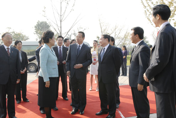 国家体育总局局长刘鹏,教育部部长周济,国务院政策研究室副主任江小娟,国家体育总局副局长于再清、冯建中,中国文联副主席、中国美协主席刘大为,国际奥委会委员、中国香港奥委会主席霍震霆,山东省省委副书记、省长姜大明,山东省省委常委、宣传部长李群,山东省副省长黄胜、李兆前等中央国家机关和山东省领导陪同。