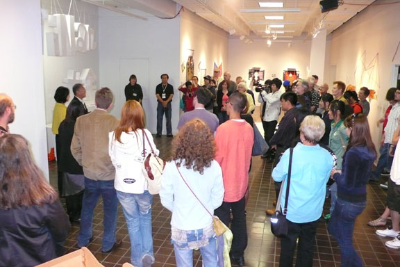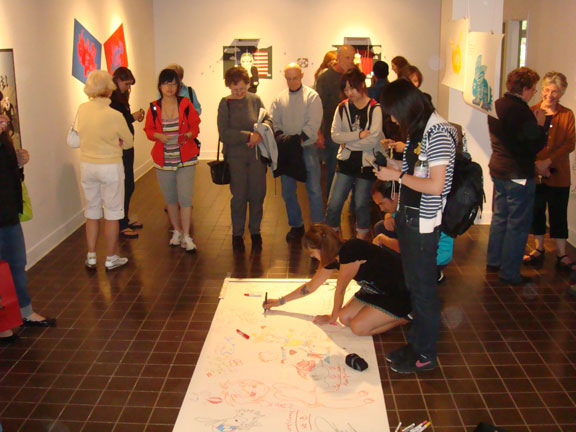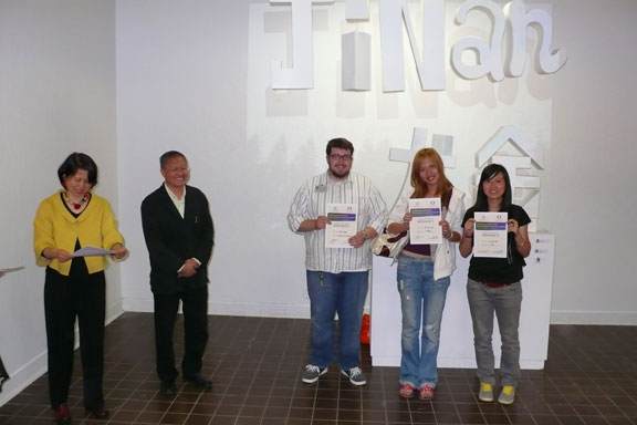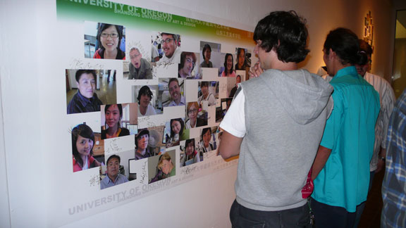 美国俄勒冈大学建筑与艺术学院与yl8cc永利官网的课程合作交流,经过一周的紧张工作,在中美两校的师生共同努力下,按时完成了课题创作,6月20日上午,进行了紧张的布展工作,于下午三时,中美两校课程交流作业展在美国俄勒冈大学建筑与艺术学院展厅开幕。美国俄勒冈大学建筑与艺术学院美术系主任、谭颖教授、王传东教授、赵进教授、美方相关教师、接待师生的家庭、全体课程交流访问团其他成员参加了展览。谭颖教授、王传东教授代表课程合作双方向两校课程交流班的同学颁发了结业证书。