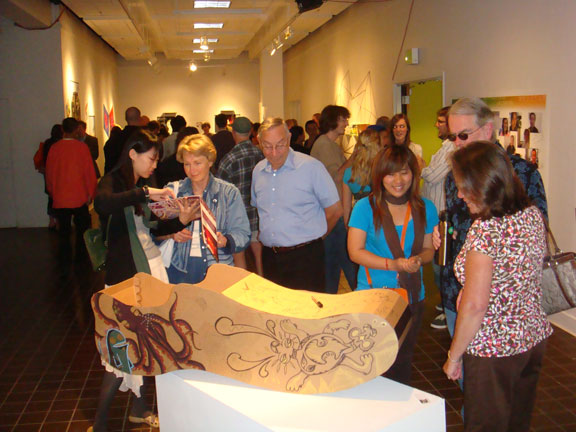 此次结业展览,是经过两校师生共同协作、寻找课程主题、相互沟通,在考察校园、城市、历史文化、自然环境等方面的前提下,将两国文化相互融合,通过不同表现形式,展示出多元的综合艺术氛围。同学们相互结成课题小组,充分沟通交流相互思想,每个选题的选择确定及表现形式都是由各组学生自行商量选定进行创作的,使项目形成良好的基础,指导老师从中启发引导创作,为课题的完成做好有力的保证。在连续的一周里,俄勒冈大学建筑与艺术学院为这次合作交流提供了做好的条件,不同课程教师为同学们进行了教学和示范,是参与课题项目的所有师生深受教益。此次合作交流的课程作业展,作品丰富,形式多样,作品有多媒体影像综合设计、平面设计、互动装置设计、动画设计、沙滩造型与绘画、摄影等多种表现形式,充分发挥的了同学们的探索精神与开阔的思路。展同时中还展示了同学们在搜集素材的过程中所做的速写采风、创作笔记等原始素材。