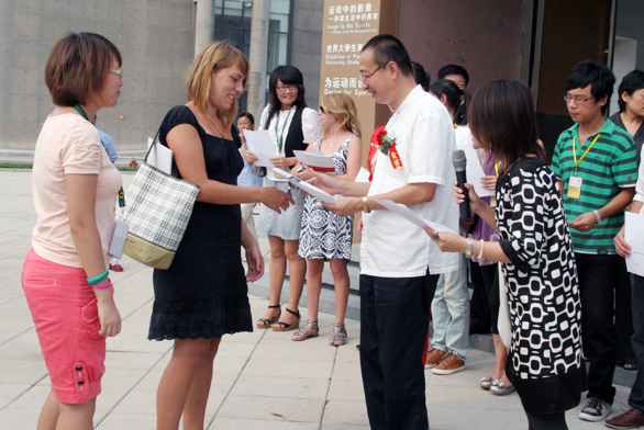 潘鲁生院长为参加项目的两国学生颁发结业证书。开幕式剪彩仪式结束后,