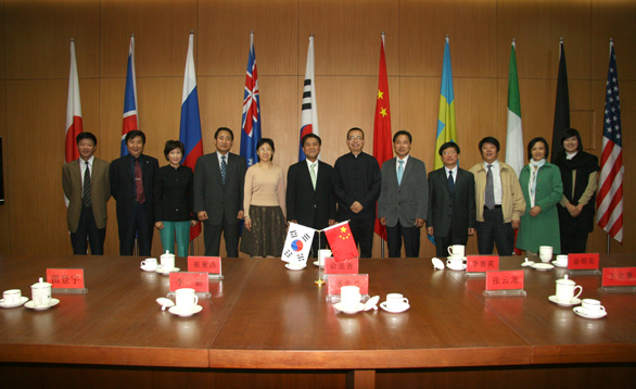 潘鲁生,副院长李新、张云龙,院长助理、办公室主任王立果,韩国大庆大学校长俞进善出席会议。